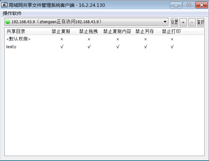大势至共享文件管理系统是国内专门设置共享文件访问权限、防止共享文件随意复制、修改、删除、下载、另存为本地的专门软件,通过在服务器上安装部署之后,就可以有效控制局域网用户访问共享文件的行为。并且,可以实现只让打开共享文件而禁止另存为本地磁盘、只让修改共享文件而禁止删除共享文件、只让读取共享文件而禁止复制共享文件等,有效保护了共享文件的安全,而且还可以详细记录共享文件访问日志,便于事后备查和审计。大势至局域网共享文件管理系统的详细截图如下: