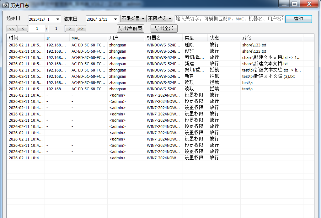 记录客户端对共享服务器的操作日志,可自定义数据库存储