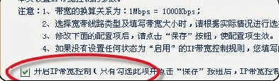 在路由器的设置菜单中找到IP带宽控制功能。以TP无线路由器为例子,一定要勾选"开启IP带宽控制"才有效。有的无线路由器在开启IP控制之后,还要重启路由器才能生效。请认真填写宽带的类型和较大带宽,否则很容易"被限速",也就是4M的宽带可能才达到2M的速度。