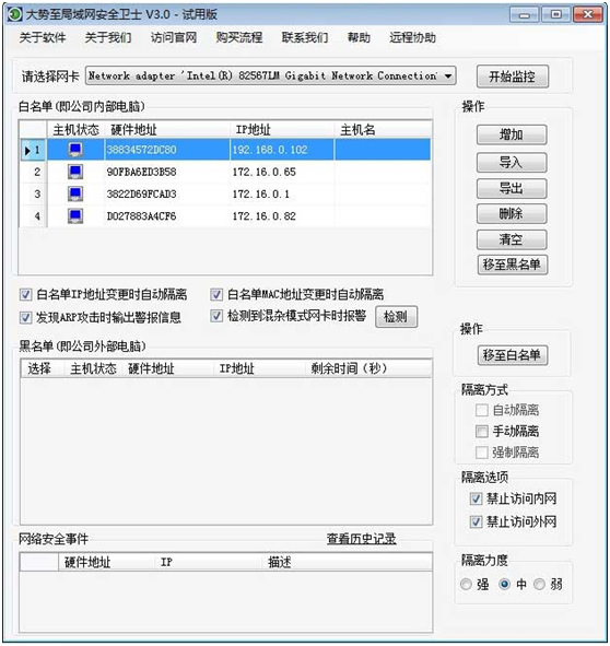 图:大势至内网安全卫士防范ARP攻击功能截图