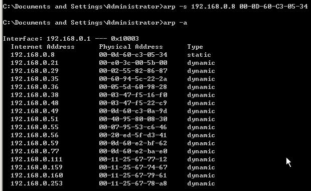 每台主机都具有一个用于缓存MAC地址的ARP缓存列表,你可以使用命令ARP -a或ARP -g来查看当前的ARP缓存列表。此ARP缓存列表是动态更新的,默认情况下,当其中的缓存项超过两分钟没有活动时,此缓存项就会超时被删除。你可以使用ARP -s来静态绑定IP地址和MAC地址,不过在Windows server 2003和XP以前的Windows系统中,就算你设置了静态MAC地址绑定项,同样会通过接收其他主机的数据包而更新已经绑定的项。