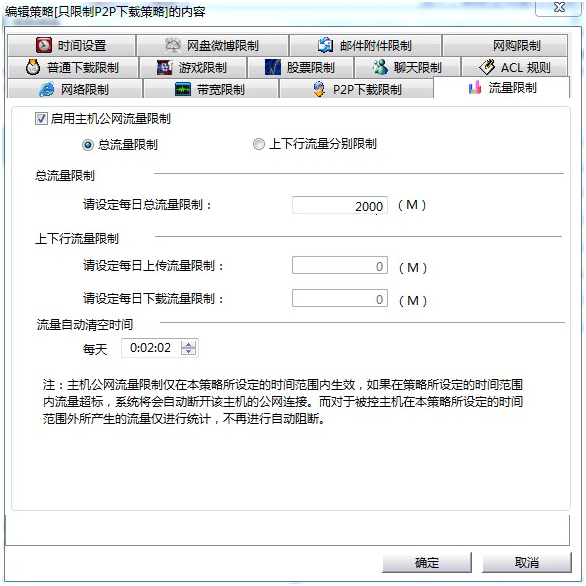 1、系统可以为局域网主机设定上行、下行流量和总流量,超过设定流量,自动断开其公网连接;