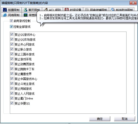 聚生网管网络控制软件较有效禁止局域网QQ游戏、禁止电脑玩QQ游戏、限制上班玩QQ游戏,从而可以严肃工作纪律,提升员工工作效率。具体设置方法如下: