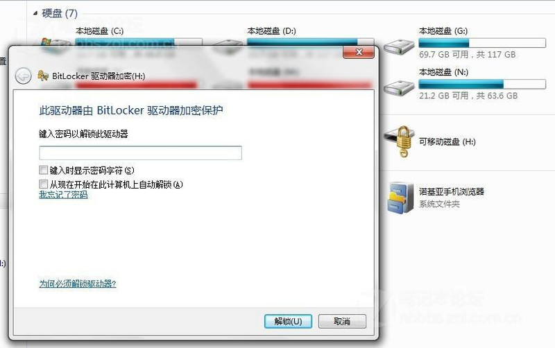 我们选较早个使用密码解锁驱动器,输入预加密驱动器密码。第二个选项是使用智能卡解锁驱动器,由于我的电脑上没有智能卡模块所以利用智能卡模块进行加密就不测试了。