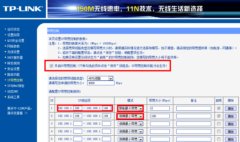 登录路由器,然后打开路由器的设置界面,左侧栏有一个IP带宽控制。