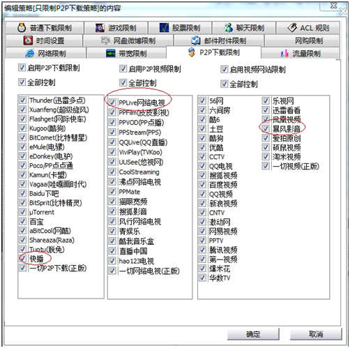 图:限制P2P软件下载、禁止P2P视频、屏蔽网页视频
