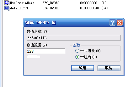 "DefaultTTL"=dword:000000ff"是用来设置系统缺省TTL值的,如果你想将自己的操作系统的TTL值改为其它操作系统的ICMP回显应答值,请改变"DefaultTTL"的键值,要注意它的键值为16进制。比如,"DefaultTTL"=dword:00000080“即相当于十进制的128.