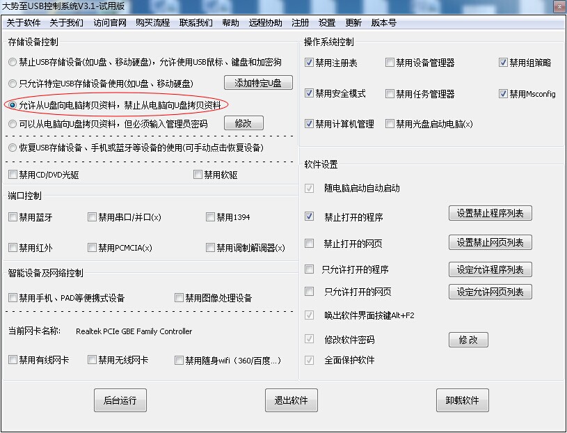 总之,对于企业等电脑数量较多,要求比较严格的单位,在控制电脑USB端口的读写方面,大势至USB控制系统是较好的选择,软件自身的保护机制可以防止被恶意删除或破解,从而使控制持久有效,另外针对操作系统的保护功能,可以有效防止电脑中的设置被私自改动影响正常使用,也是企业中常用的功能之一。