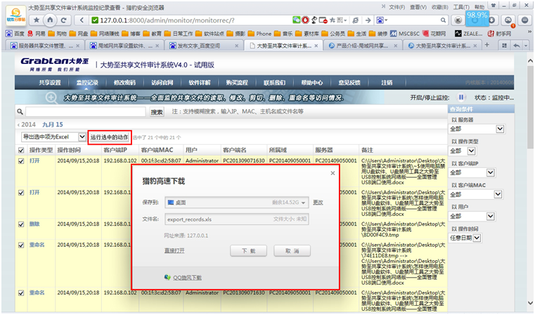 3、根据IP或MAC地址来查询局域网主机对那些共享文件做了那些具体操作。