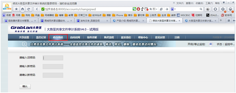 大家肯定也有经常更新密码的习惯吧,那么为了安全该审计系统统一也需要定期修改密码,如下图: