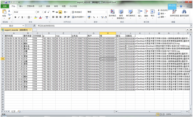 12、访问共享文件的日志情况可以导出为其他格式,如word、excel等,便于第三方审计。