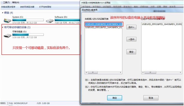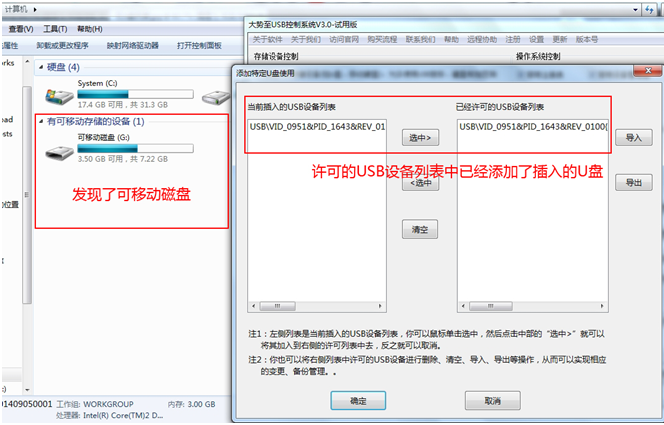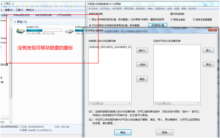 当将插入的U盘加入到许可的列表中看看有什么样的效果了,如下: