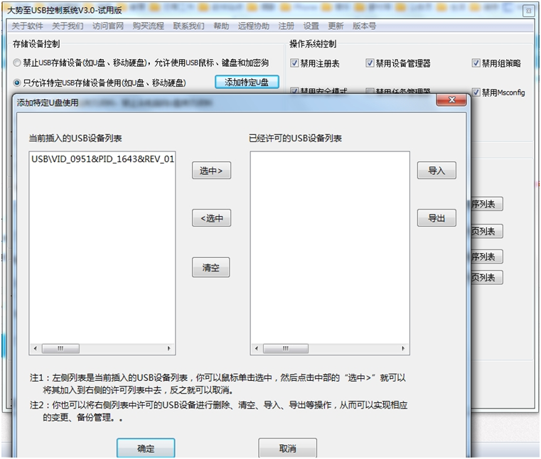 首先,点击“添加特定U盘”弹出如下对话框: