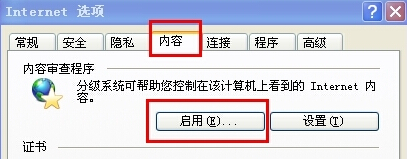 2、切换到“内容”选项卡,点击“内容审查程序”下的“启用”按钮。