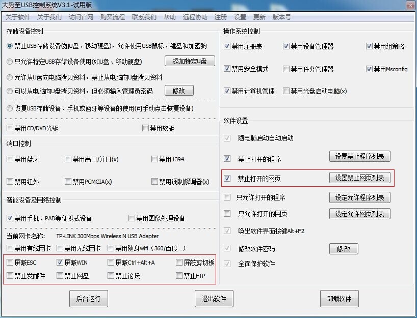 大势至USB禁用软件、屏蔽U盘软件同时还可以禁用网盘、禁止局域网发邮件、限制访问论坛、禁用FTP上传等
