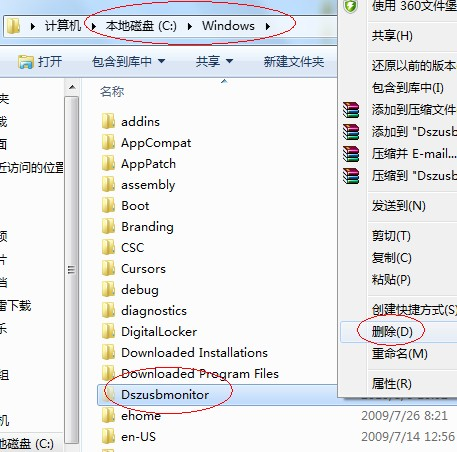 图:删除大势至USB控制系统安装文件夹(旧版路径)