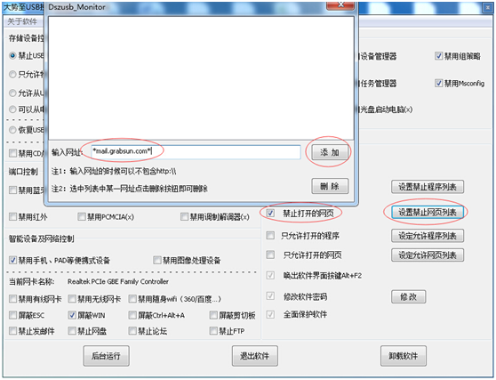 图:大势至USB接口禁用软件禁止qq登陆、限制qq传文件、禁止网盘、禁止发邮件的方法