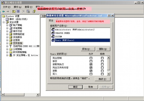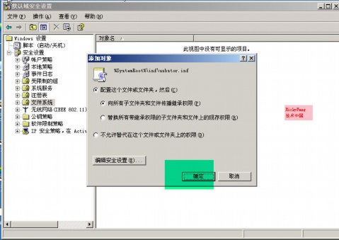 方法:开始―控制面板―管理工具―域安全策略―计算机配置―WINDOWS设置―安全设置―文件系统,单击右键――添加文件或文件夹。找到c:\windows\inf\usbstor.inf 和usbstor.pnf,并添加,如下图所示: