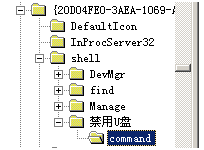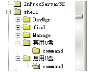 第四步:分别在 禁用U盘 和 启用U盘 项右击新建一个项命名为“command”。