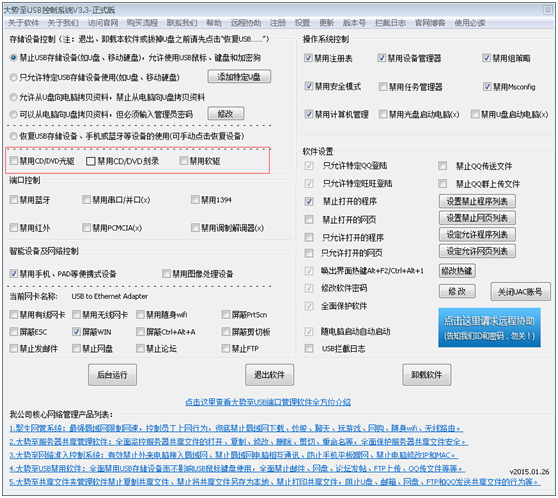 方法二、通过专门的电脑安全管理软件、禁用光驱软件尤其是禁止光驱刻录功能的软件来实现。