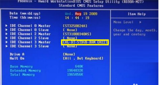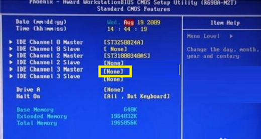 然后,接着移动到含有CD/DVD项上,按回车,从弹出的扩展面板中选择“【None】”项,并再次按回车键确定。如下图所示: