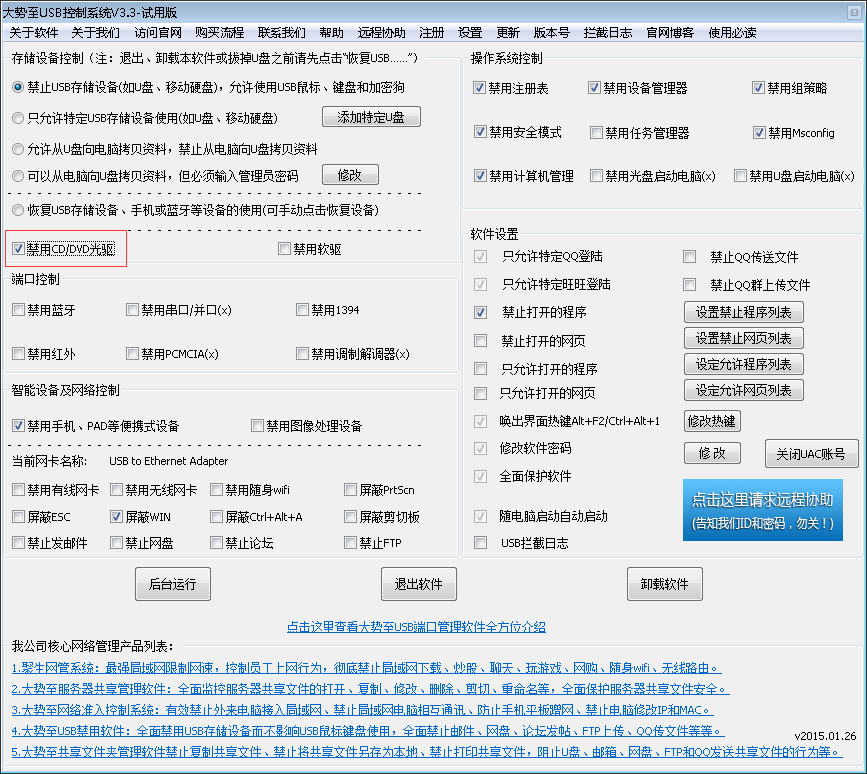 二、通过专门的电脑安全管理软件、禁用光驱软件来完全限制光驱的使用。