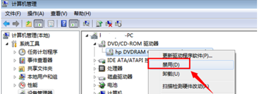 3、通过“设备管理器”来禁用光驱、屏蔽光驱使用,方法如下: