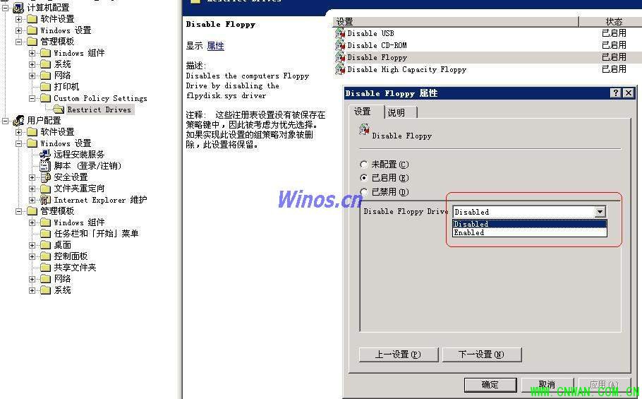 正确的使用方法是在要设置的驱动器里选择”Disabled”或”Enabled”