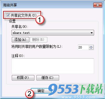 勾选“共享此文件夹”后,单击“应用”、“确定”退出。