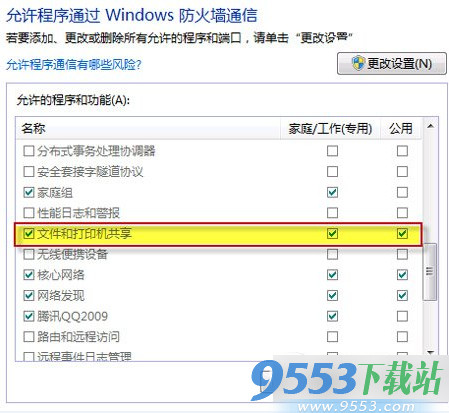 打开“控制面板/系统和安全/Windows防火墙”检查一下防火墙设置,确保“文件和打印机共享”是允许的状态。