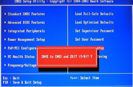 设置完毕之后,可以按“ESC”键或者“F10”键,就会出现提示是否保存修改,然后选择“Y”并回车,重启电脑之后即可。通过这样的设置之后,电脑只能从硬盘启动了。如下图所示:
