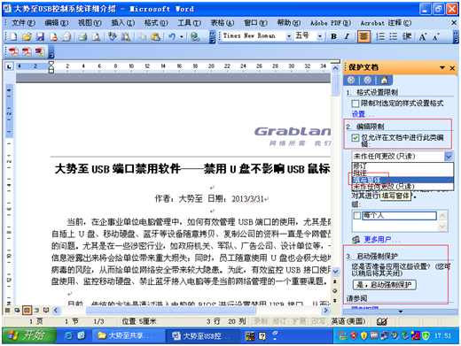 一、通过微软Office自带的“保护文档”功能来防止局域网用户复制、修改、剪切或删除共享文件,全面保护共享文件的安全。