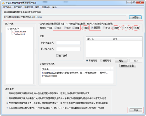 也就是说,通过“大势至共享文件夹管理软件”你可以实现只让读取共享文件而不能复制共享文件、只让打开共享文件而不能另存为本地、只让修改共享文件而不能删除共享文件,从而极大地保护了共享文件的安全,保护了单位的无形资产和商业机密。