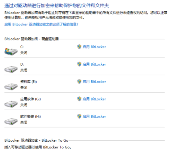 点击“开始”-“运行”,输入“BitLocker”,然后回车,即可出现BitLocker的软件界面,如下图所示: