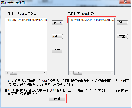 图:这样就将网银U盾添加到许可的USB设备里面了