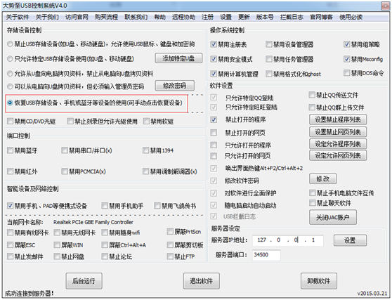 总之,大势至电脑USB端口管理软件是当前国内监控USB设备使用,尤其是禁用U盘、移动硬盘和手机等USB存储设备使用较简单、较有效和较严密的电脑U口监控软件,可以真正做到在禁用USB设备,尤其是限制U盘使用、监控USB存储设备的同时而不影响非USB存储设备的使用,是当前国内控制USB接口使用、监控USB设备较精确、较严密的电脑USB端口监控软件、电脑U口禁用软件。