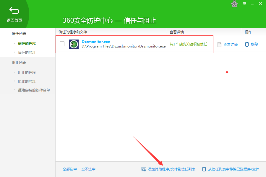 360安全卫士添加大势至USB禁用软件到白名单的方法: