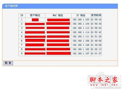 来到无线路由器配置界面,我们先来点击“DHCP服务器”选项,在这里我们可以设置所有可以上网IP地址段,想要详细了解有哪些IP地址正在被使用,我们可以点击“客户端列表”,这里详细的记录了所有正在使用这个路由器上网的IP地址和对应的电脑信息。
