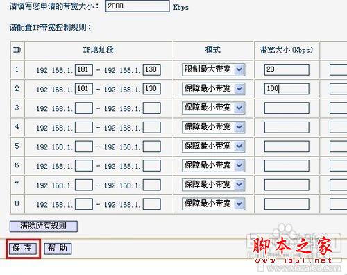 使用TPLINK限制网速的时候千万不要忘记了勾选“启用”和保存,否则你制定的规则是不能生效的,这点一定要注意,不同的无线路由器设置方法可能略有不同,不过大体是相同的。