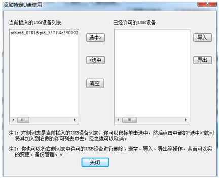 1、指定某些U盘拷贝电脑中的文件,除此之外任何usb存储设备都无法连接电脑拷贝资料,包括手机或者SD卡等;