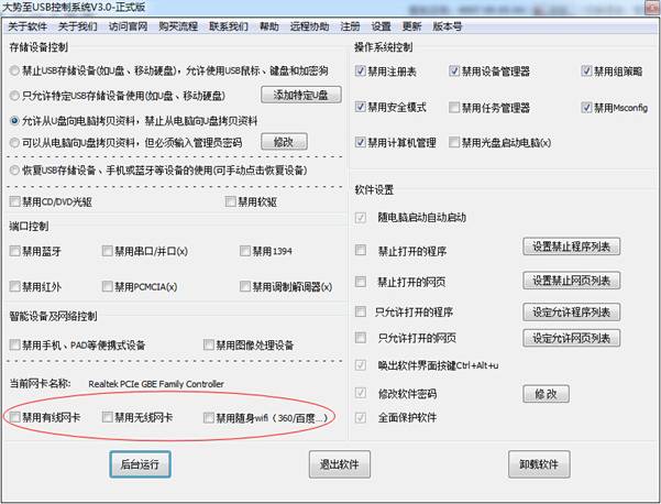 图:大势至禁用U盘软件禁止无线网卡使用的功能