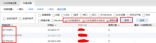 5、在外接设备下面选择要禁用的终端前面打勾,再选择要禁用项,点击禁用就可以了