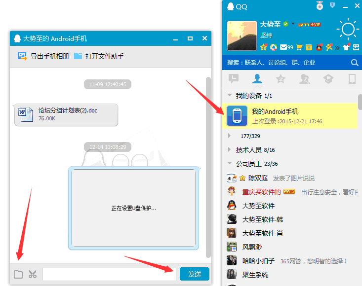 特别指出的是,大势至USB控制系统还集成了禁止QQ传输文件、禁止QQ群文件共享以及禁止手机电脑文件互传、禁止电脑手机无线传输文件的功能,从而更为严密地实现了电脑文件安全的管控,防止通过各种隐秘的通道泄露电脑文件的行为。如下图所示: