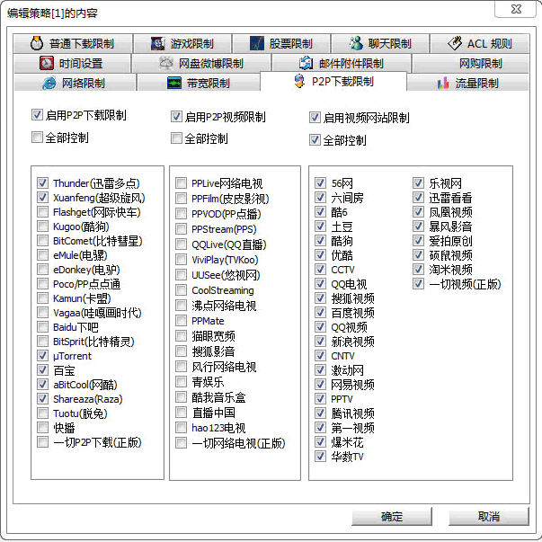 图:禁止P2P下载、禁止在线看视频、禁止网络电视
