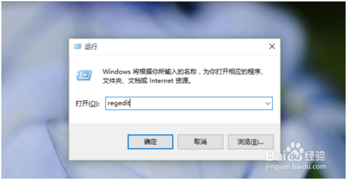 - 首先,我们需要使用注册表编辑器来开启Win10系统照片查看器功能,因为其实这个功能是被隐藏了,那么按下Windows徽标键+R键,打开运行命令窗口,输入“regedit”命令。