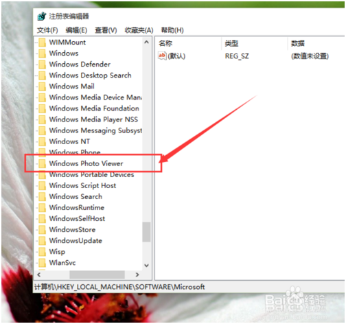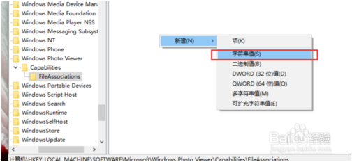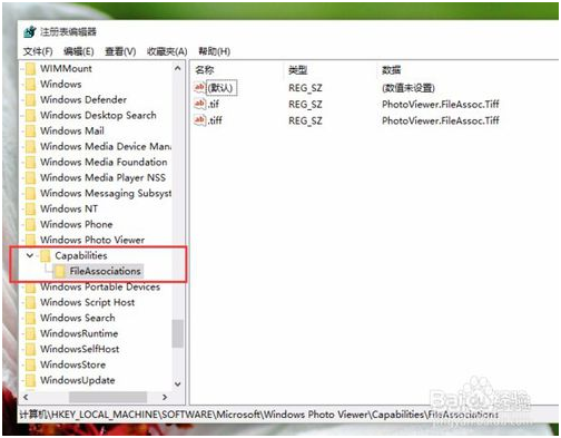 - 3在Microsoft目录下,我们需要找到Windows Photo Viewer\Capabilities\FileAssociations目录项,直到看到该子目录下的一系列关键文件。