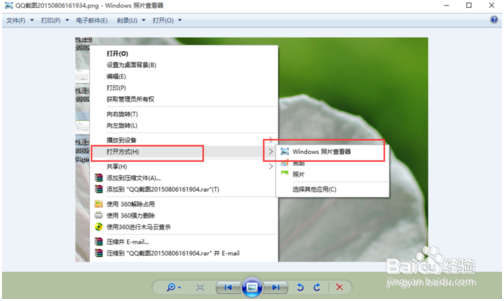 - 7到这里,我们就成功修改了图片文件的打开方式,我们可以关闭注册表编辑器,然后对着你想要打开的图片格式的文件击右键,选择“打开方式”,就可以看到打开程序列表中有“Windows照片查看器”。