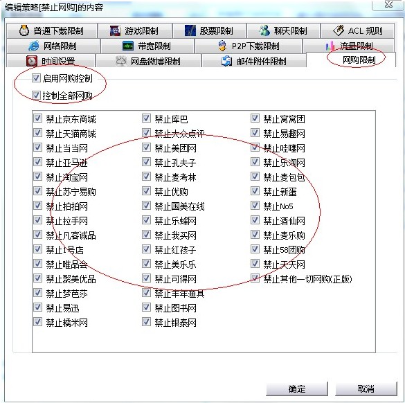 方法二、通过网络管理软件来过滤购物网站、禁止员工上班网购的行为。