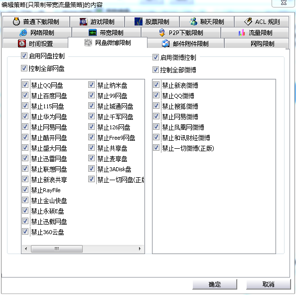 图:聚生网管禁止网盘和禁止微博的功能