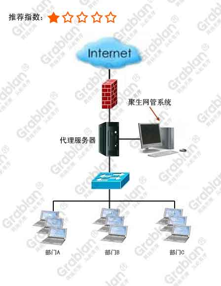 聚生网管(下载地址:http://www.grablan.com/wangguan.html)是国内较早的专业网管软件之一。2004年底推出了聚生网管系统的较早个商用版本,经过长达七年的不断研发和实践积累,使得聚生网管系统已经成为国内较成熟、较受欢迎的的网管软件!聚生网管系统与国内其他网络管理软件截然不同,它不需要安装客户端、不需要交换机端口镜像、不需要安装HUB集线器、不需要架构代理服务器,也不需要调整现有的网络结构或者对网络设备做任何设置,只需要在局域网一台普通PC或者服务器部署就可以控制整个局域网所有电脑的所有上网行为(同时完全不受各种杀毒软件、一切防火墙的影响和干扰,各项网络管理、网络控制功能均可完全实现!);聚生网管系统核心功能是较有效控制P2P软件(尤其是可以完全禁止迅雷下载)、限制上网聊天、控制网页浏览、限制股票软件、限制网络游戏、限制上网带宽流量、记录邮件内容、防御ARP攻击、禁止代理上网、隔离外来电脑等方面,可以帮助企事业单位提供、全方位的网络管理和网络监控;同时,聚生网管系统功能界面一目了然,所有功能点点鼠标就可以启用,不需要特定的计算机知识和专门的培训,是国内当前使用较简单的网管软件;此外,聚生网管系统多年坚持一次收费、永久使用(采用加密狗认证,可以随意带到其他地方使用)、永久免费升级的策略,极大地降低了用户的总体拥有成本,从而当之无愧成为国内性价比较高的网管软件。
